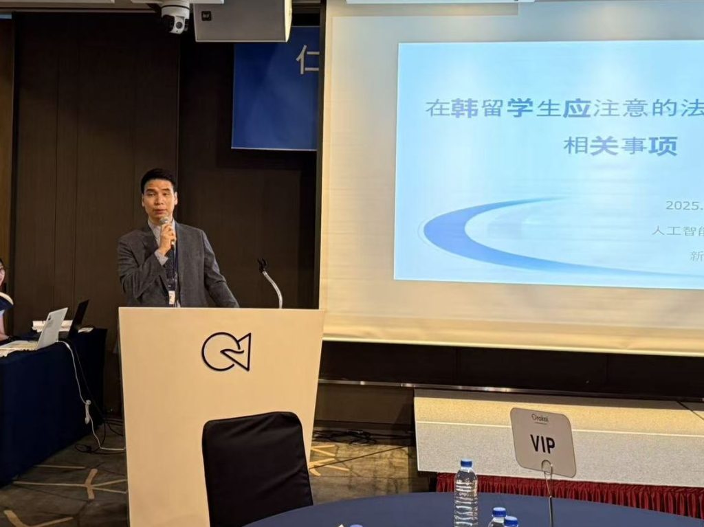 Joseph Park J. D. of BizWin attributed in the occasion of Inha Univerity Graduate School, Program of AI & Data Law’s orientation at September 4, 2025., held in Orakai Hotel, Songdo-dong, Incheon, Korea. The program of AI & Data Law, which has the largest and the most result-showing law research center in the Inha School of Law, is mainly consisted of Chinese students, thus the orientation took Chinese language mainly.